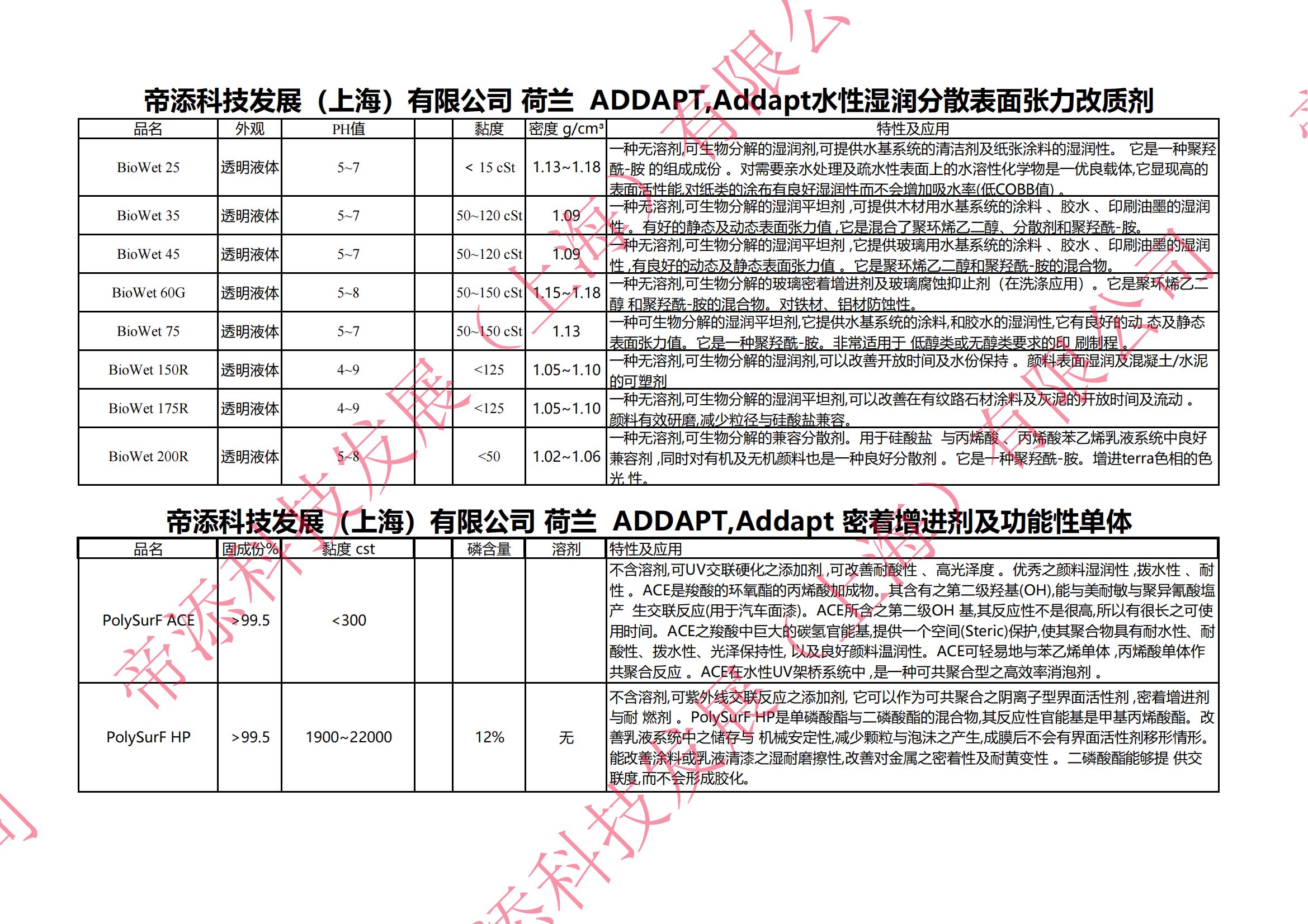 帝添科技發(fā)展(上海)有限公司 荷蘭 ADDAPT,Addapt水性助劑