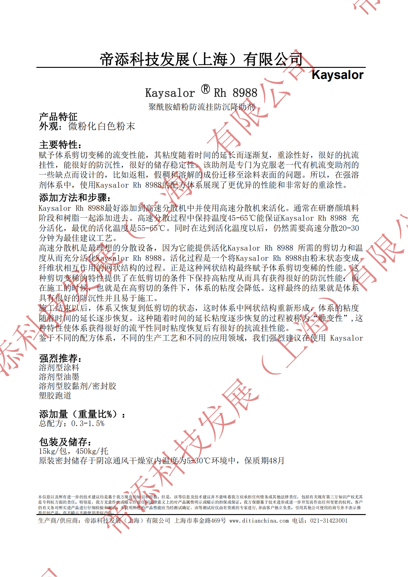 Kaysalor Rh 8988 純聚酰胺蠟粉防沉防流掛助劑Ultra(可下載)